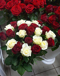 Смесь белых и красных роз в одном букете придаст ему большего значения, комбинируя символизм каждого отдельно взятого цвета. Белые розы – признак нежности и чистой любви, а красные раскроют чувства с эмоциональной точки зрения, добавят страсти и насыщенности. Букет подойдет для выражения сильных чувств, напомнит об истинности любви, поможет получить долгожданное прощение и придать новых красок отношениям.